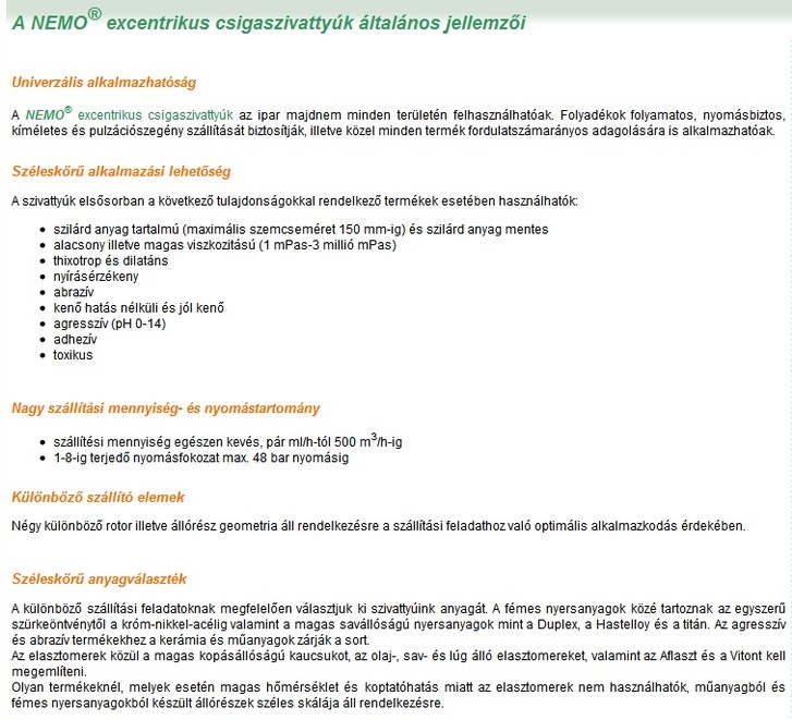NEMO excentrikus csigaszivattyúk (Netzsch)